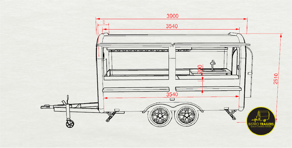 The food trailer’s frame and chassis are made from galvanized steel and fully insulated.